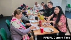 Внутри – широкие столы. За ними дети рисуют войну, флаги, любимых персонажей аниме. Взрослые обсуждают, как и где им жить дальше.