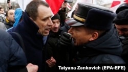 Павла Северинца тоже задержали – около его собственного подъезда. Сторонники политика пытались отбить его у милиционеров в штатском, но Северинца затолкали в машину и увезли.