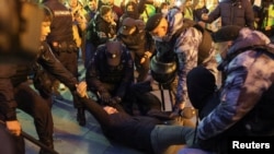 Некоторых участников митинга силовики задерживали, поодиночке вытаскивая из толпы, а некоторых просто просили уйти. Отдельных протестующих задерживали сразу четверо полицейских.
