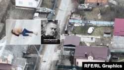Через два часа дрон украинских военных из состава ТРО "Азов-Киев" (сейчас – 3-я ОШБр) снял видео, которое есть в распоряжении Радио Свобода. На нем видно, как в этом месте лежит лицом вниз убитый Городецкий: